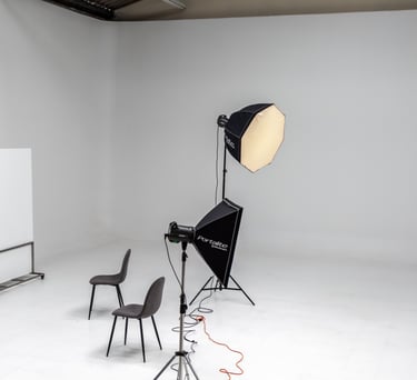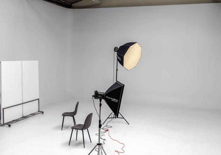 Estudio fotográfico de 100 metros cuadrados y 6 metros de alto.